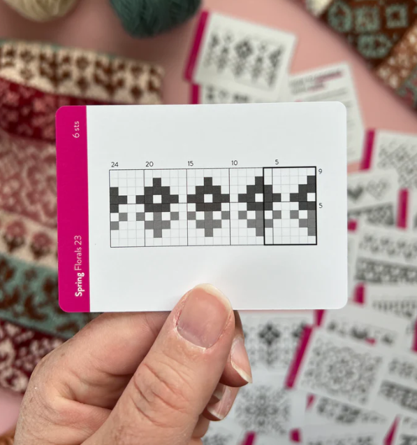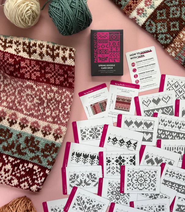 Le jeu de cartes « Spring Doodles » est votre nouveau dictionnaire de points de broderie jacquard portable préféré ! L’outil idéal pour laisser libre cours à votre créativité ! Utilisez ces cartes flexibles et modulables pour réorganiser et créer visuellement le motif jacquard parfait, du début à la fin.