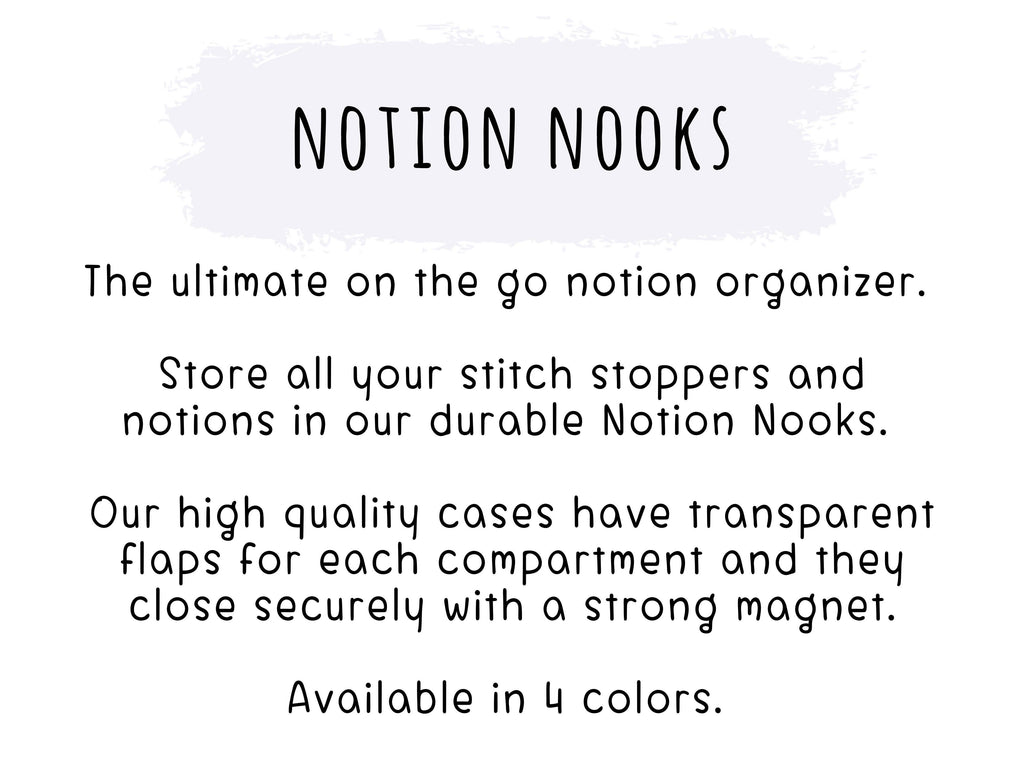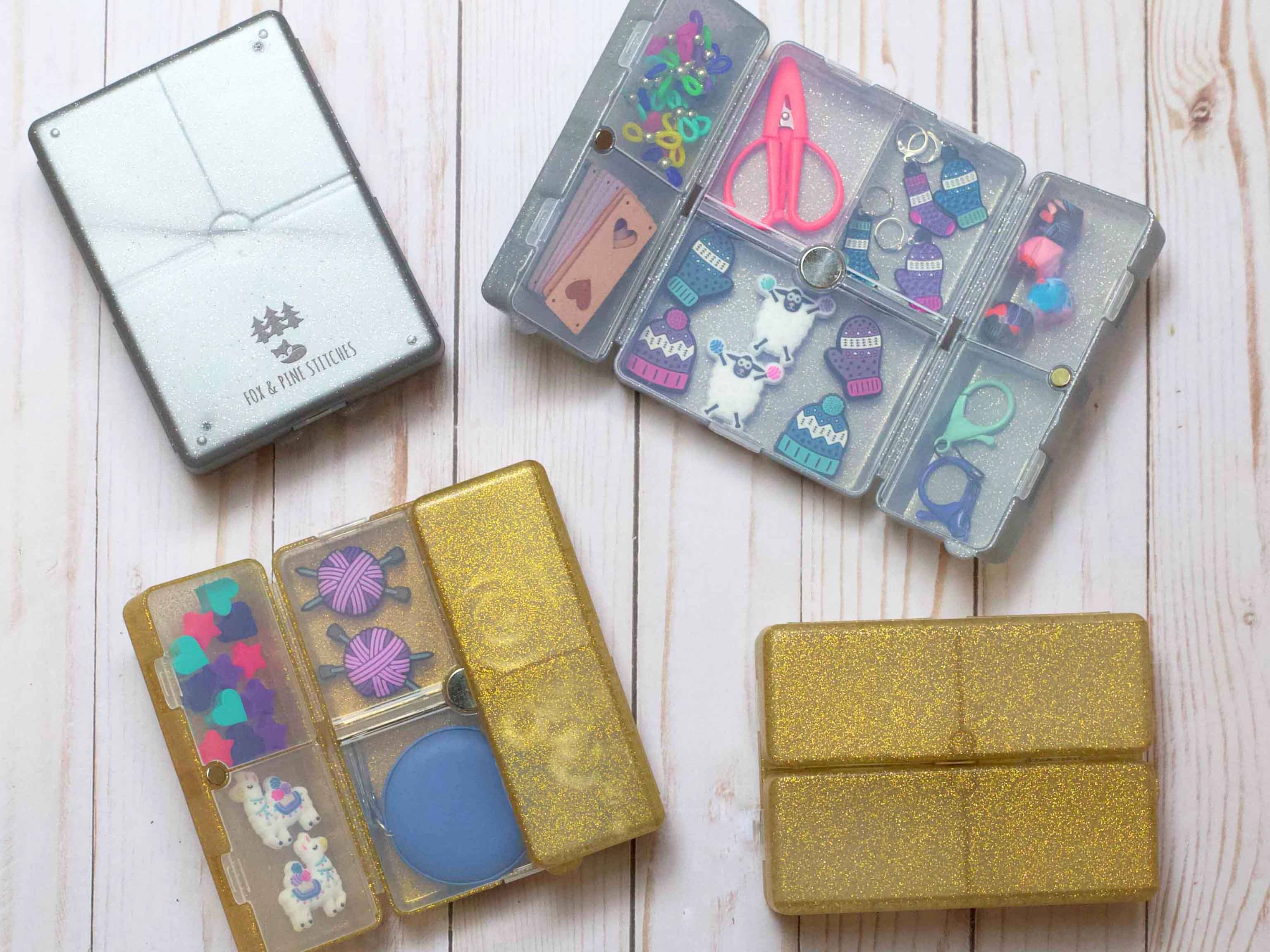 Cette boîte est l'organisateur de notions ultime à emporter. Vous ne voudrez plus jamais quitter la maison sans elle ! Rangez et exposez fièrement tous vos arrêts de mailles, accessoires et outils dans nos conteneurs portables et durables en plastique rigide.